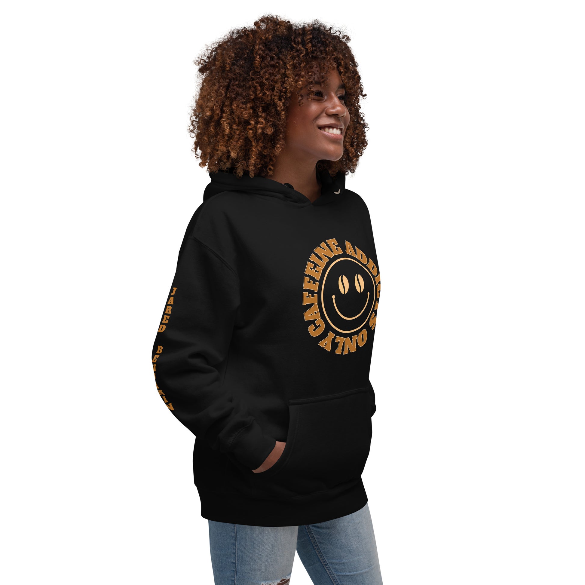 "Caffeine Addicts Only" Unisex Hoodie with Jared Benjamin on Arm