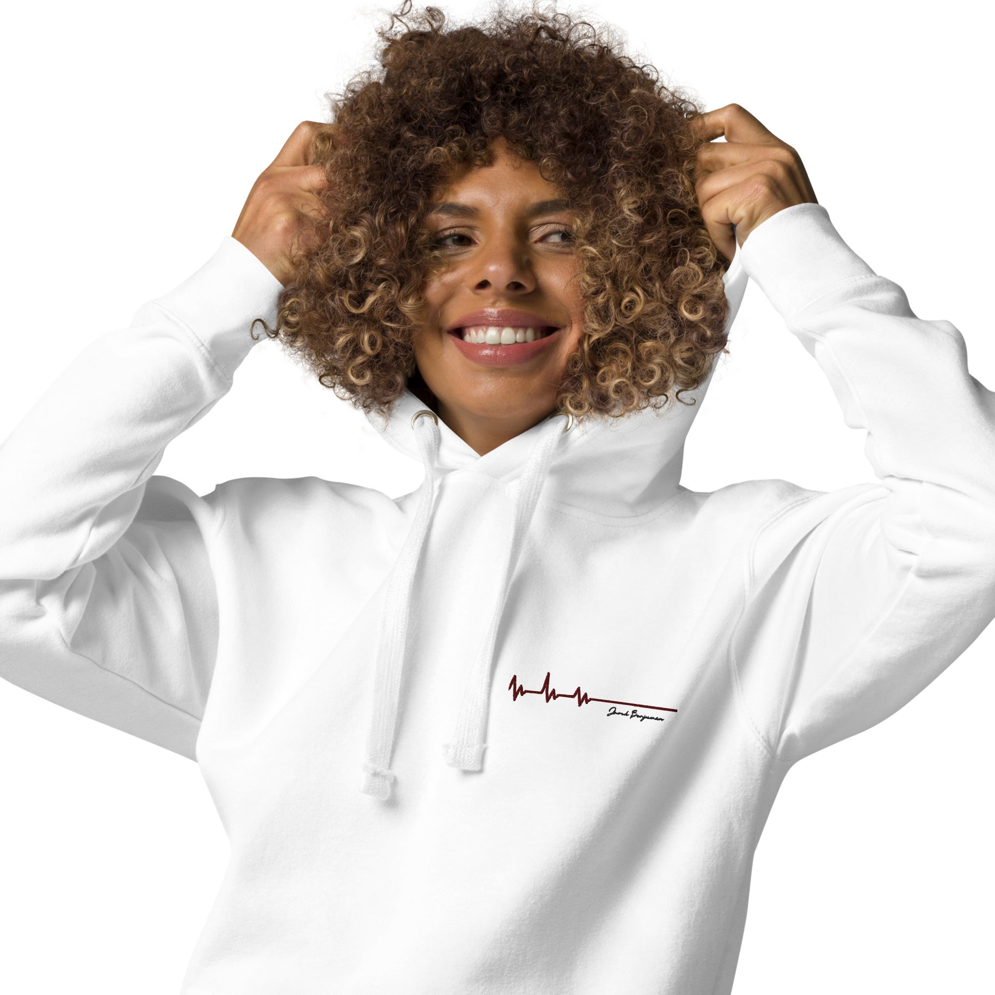 Flatline 2 Sided Embroidered Front Hoodie in White with Printed 400 Milligrams on the Back